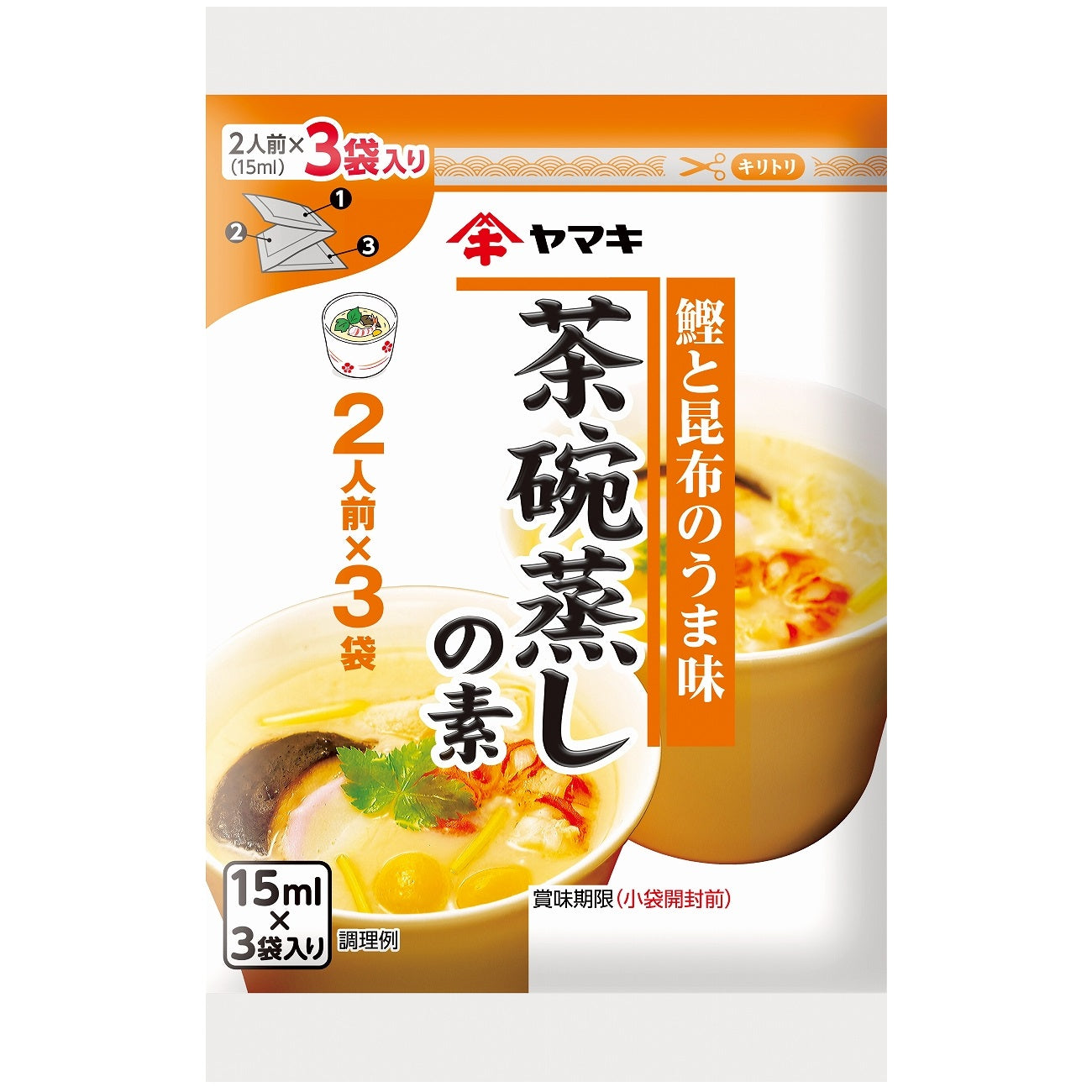 鰹と昆布の合わせだしが効いた茶碗蒸し専用だしです。卵とお好みの具材で手軽に美味しい茶碗蒸しが出来上がります。卵1個に対して、本品1袋をご使用ください。本品1個で卵3個分(卵1個に対して1袋×3回分)の茶碗蒸しが作れます。